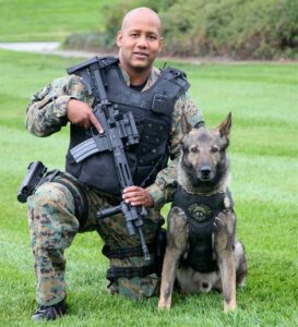 Officer Washington with K-9 Jago, who received VetStem Cell Therapy for semitendinosus myopathy
